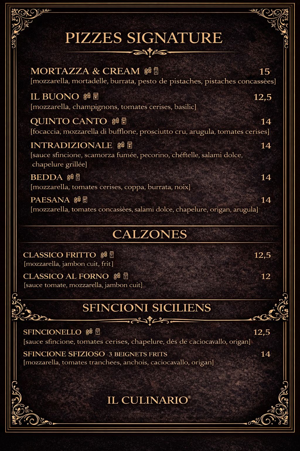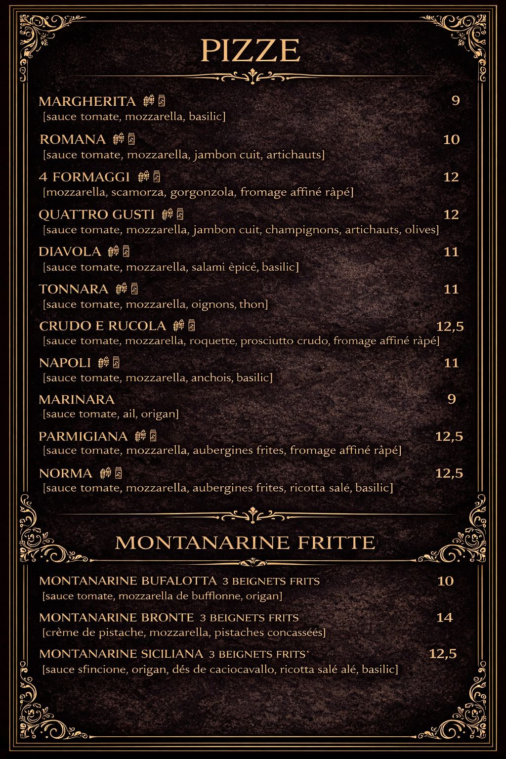 • Menu de pizzas